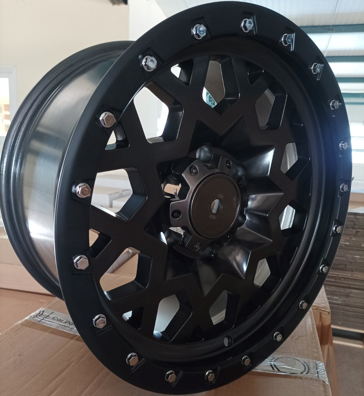 OFF ROAD 4X4 1008 BLACK MATT GUNMETAL FACE CHROME RIVETS STYLE BLACK RHINO